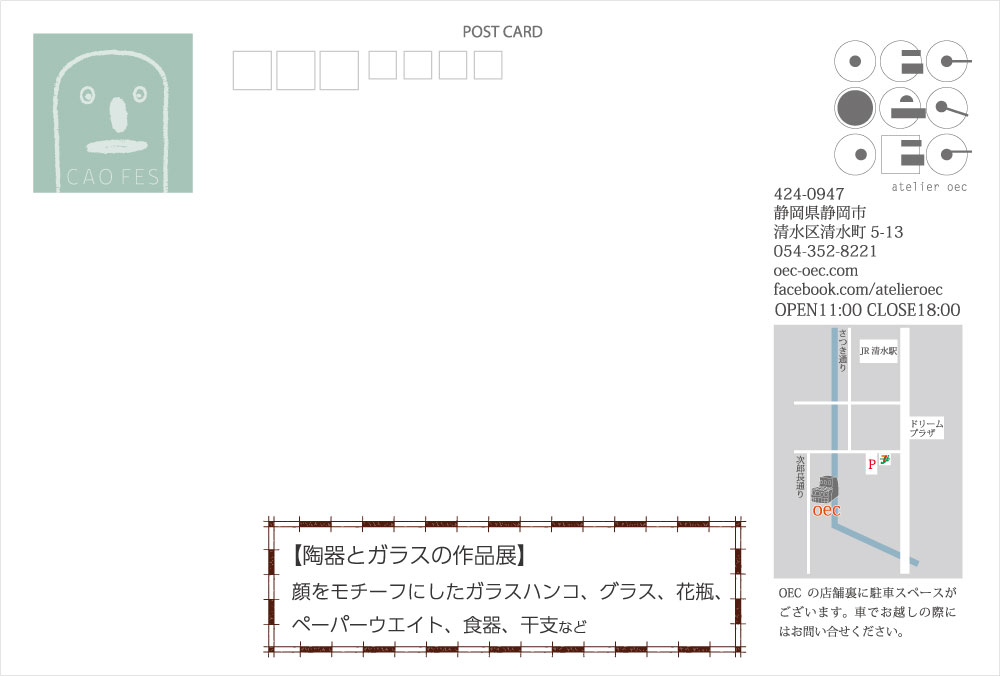 二人の作家さんの作風の共通点に可愛い「顔(カオ)」があったので、今回は「かおフェス2017」と題して、2017年11月15日〜25日までの11日間で開催いたします。