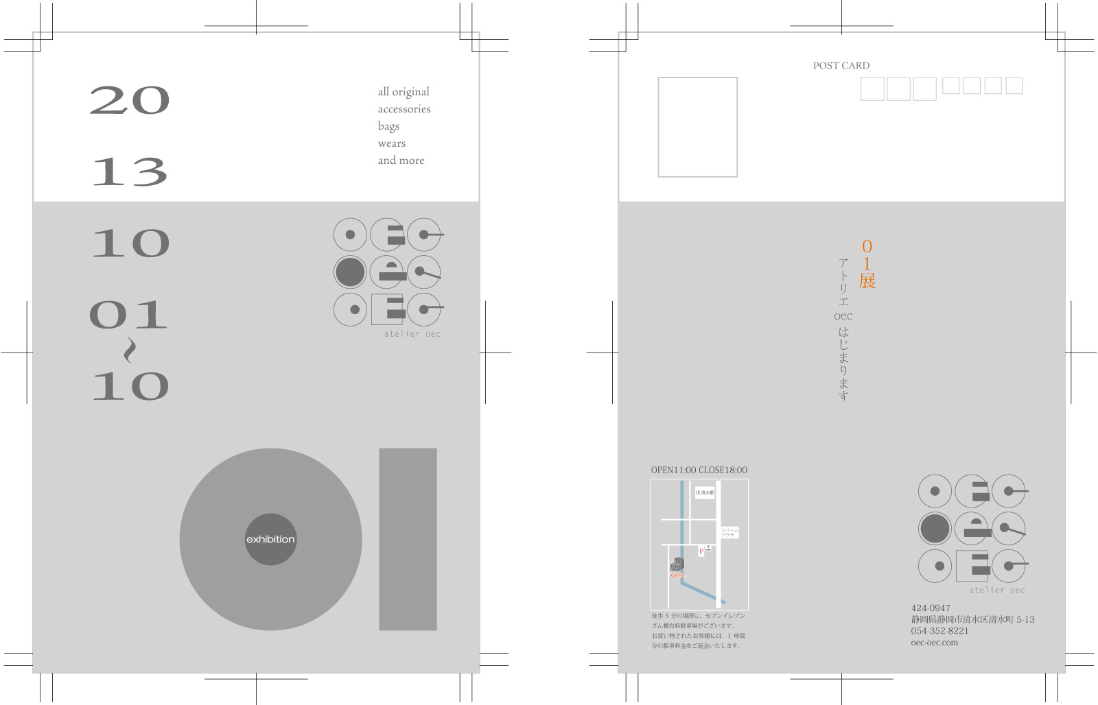 atelier-oec 01展のお知らせ This entry was posted in 01展 Exibition on 2013年9月17日 by tomotomo. 夫婦二人+小さい女の子+老犬で、 コツコツと改装をしてきた自宅スペースが、 ようやく皆様と共有できるまでになりました。 まだまだ、これからなのですが、 最初の一歩として「01展 01exibition」を企画しました。 こちらもまた、夫婦二人で製作した「01」を モチーフにした商品を取り揃えました。 商品画像はのちほどUPします。 お楽しみに! 共有:クリックして Twitter で共有 (新しいウィンドウで開きます)Facebook で共有するにはクリックしてください (新しいウィンドウで開きます)クリックして Google+ で共有 (新しいウィンドウで開きます) 関連